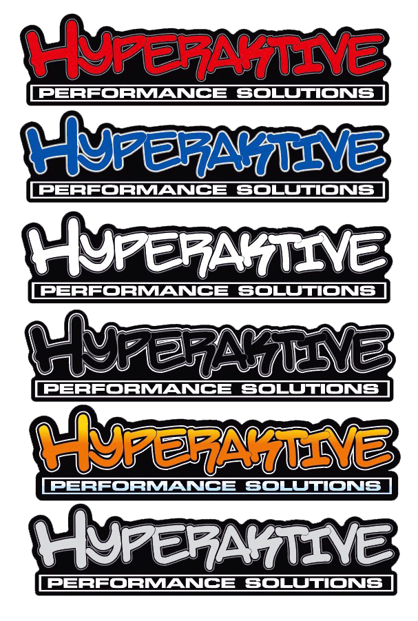 Hyperaktive Performance Solutions logo decals in a variety of colors to fit your build!