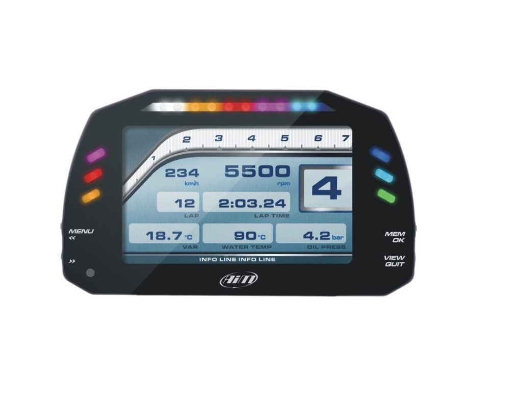 MXS 1.2, the evolution of MXS, is the dash logger designed to acquire and display data coming from your ECU, the internal accelerometer and gyro, as well as from the GPS08 Module included (1.3m or 4m) in the kit, analog/digital inputs and predefined math channels. Performance and data acquired can also be incremented adding up to eight expansion modules. Its 5″ display has been specifically designed for small cockpits installation.