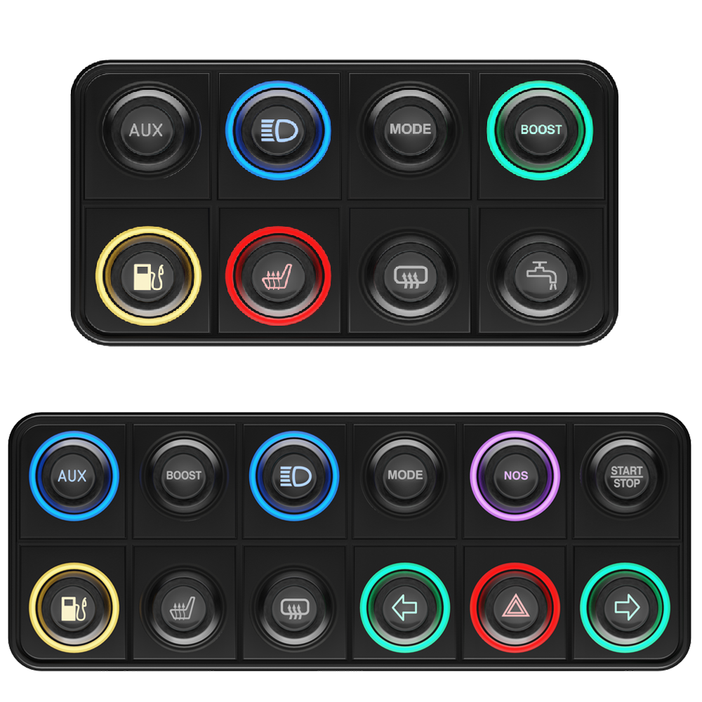 AiM CAN interface keypads for PDM applications, will enable you to have your own selected buttons at your fingertips.  The keypads are designed to interface via CAN with your PDM08 or PDM32 and are manufactured to a high standard for the harshest of motorsport conditions.  The keypad can withstand moisture during use and cleaning, and holds an IP67 rating, making them immune to water, mud, soil, sand, oil, chemicals.