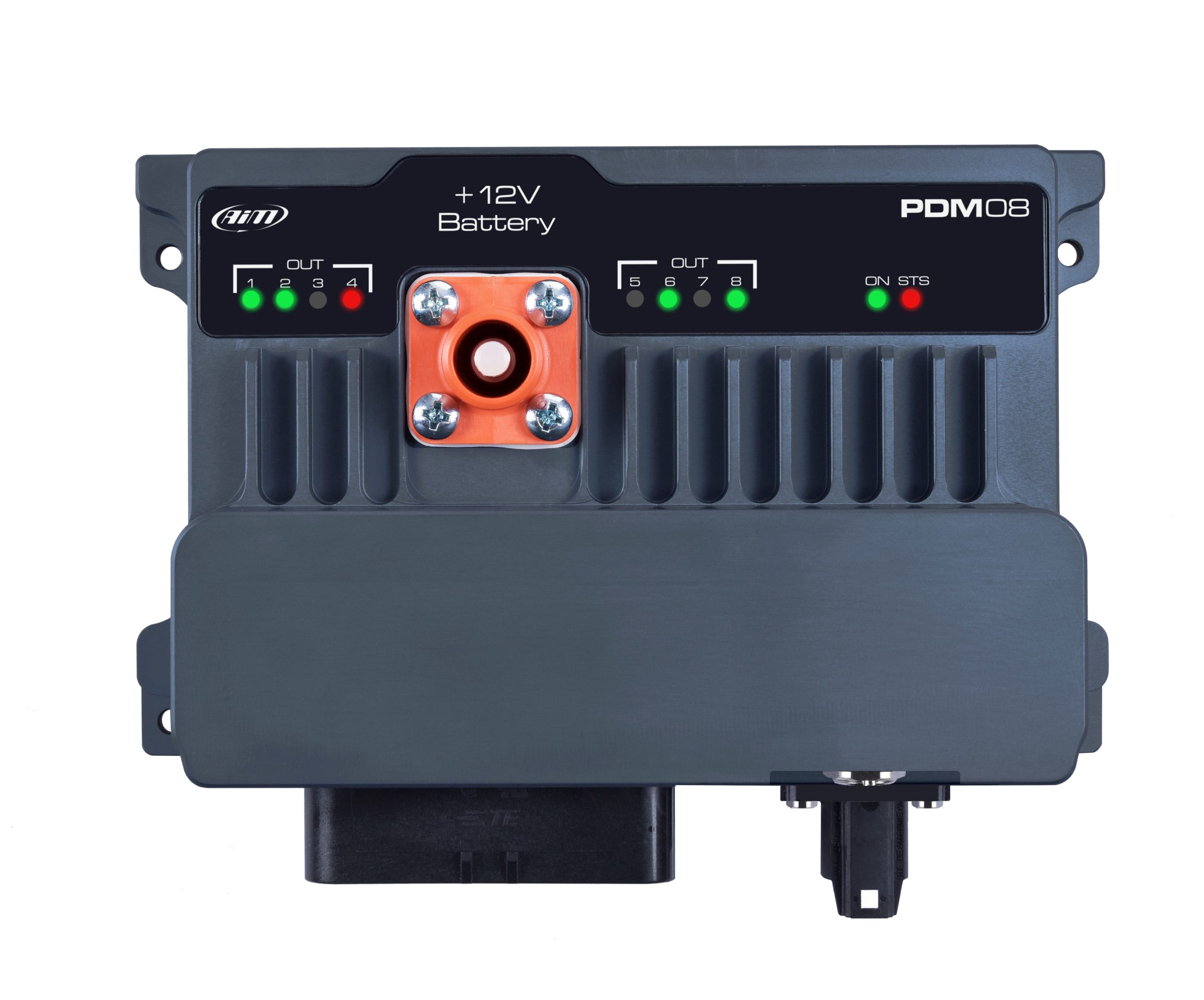 The AiM PDM08 and PDM32 Power Distribution Modules are designed to distribute power to multiple circuits on your vehicle, easily replacing traditional fuse and relay systems. AiM’s PDM’s are housed in an IP65 rated anodized billet aluminum case, and are designed to handle the rigors of motorsport and include a complete professional data logger and internal dash controller. An AiM PDM at the center of vehicle electronics will greatly simplify and tidy your wiring harness and electronics installation while providing much more control.