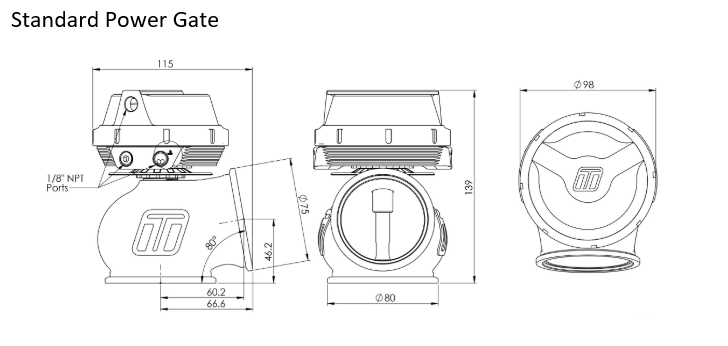 Standard Power Gate – high performing 60mm external wastegate, the largest in the Gen-V range