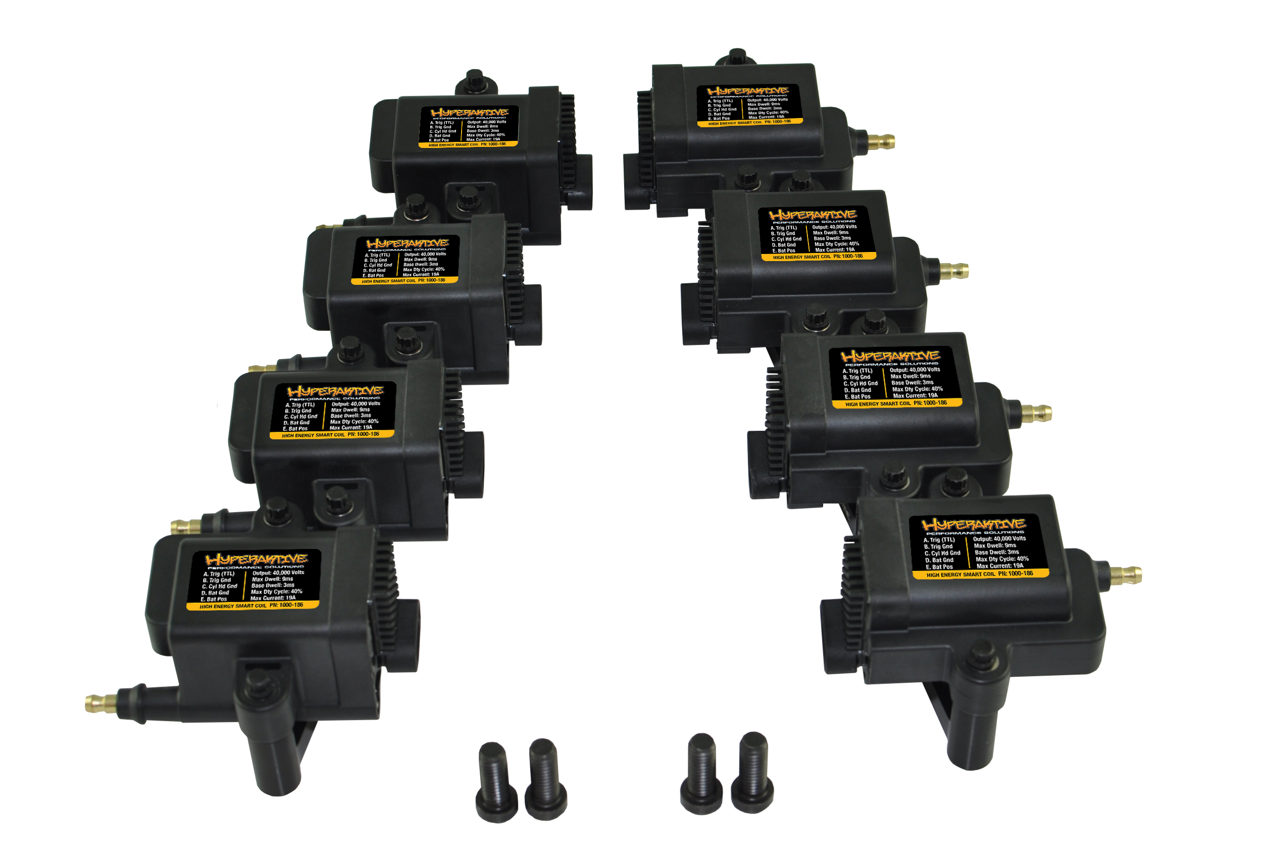 Kit includes 2 coil brackets which will support 4 coils each (8 coils total), 12 point coil mounting hardware, and bracket mounting hardware.