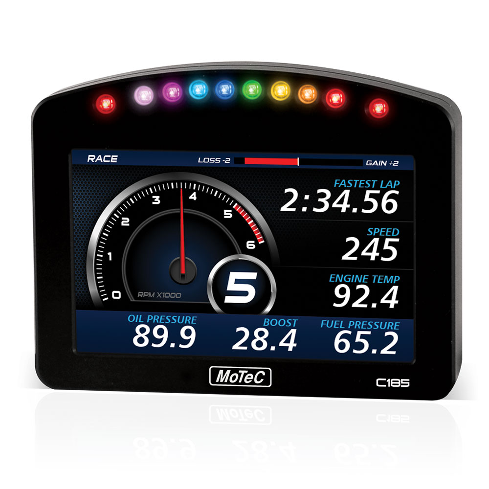 With the release of the C185 Display Logger, MoTeC now offers the best of both worlds – a stunning full color display combined with a powerful, professional level data logger. It comes standard with 250 MB internal logging memory (can be upgraded to 500 MB) and MoTeC’s world-renowned i2 data analysis software. A Pro option is available for expert analysis.