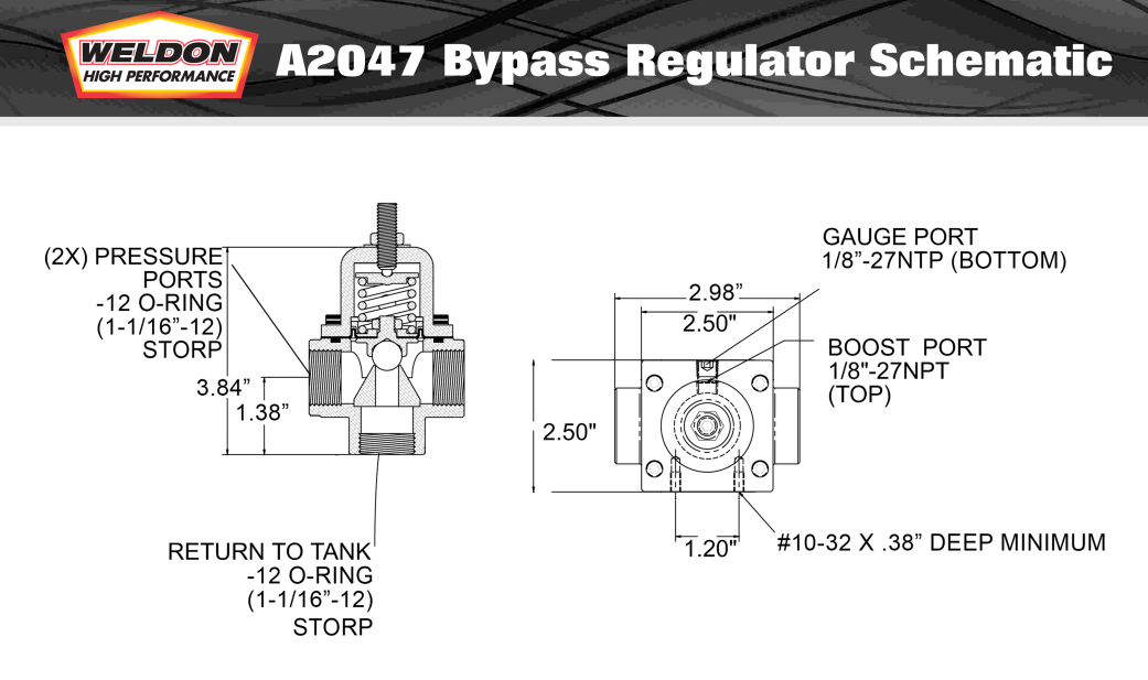 All Weldon Regulators maintain steady fuel delivery during dramatic changes in fuel demand, such as WOT conditions, boost application and gear changes with precision pressure control.